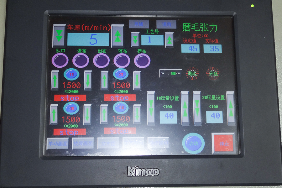 Tá an LMH815 features a multi-dimensional adjustable control system that allows precise adjustment of key parameters such as line speed, grinding head speed, and sanding pressure. Users can customize sanding depth and surface effects based on fabric thickness, elasticity, and final product requirements, easily achieving a variety of finishes from a delicate and soft velvet to a short, dense matte finish. This parameter flexibility not only meets the personalized needs of fabric production but also provides more possibilities for fabric development and innovation, enabling the production line to quickly respond to diverse market changes and increase product added value.