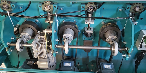 Rialú Beacht ar an gCóras Tiomána Neamhspleách Minicíocht Athraitheach: Tá tiomáint minicíochta athraitheach neamhspleách ag gach sorcóir meilt, rud a chuireann go mór le solúbthacht agus inrialaitheacht an mheaisín. Tríd an inverter, is féidir leis an oibreoir a choigeartú go beacht an luas sorcóir agus brú de réir riachtanais na fabraicí éagsúla, a bhaint amach il-leibhéil, céim ar chéim mionchoigeartú ar an éifeacht sanding, ag cinntiú táirge comhsheasmhach agus ard-chaighdeán ó bhaisc go bhaisc. Ina theannta sin, ceadaíonn an tiomáint neamhspleách rollóirí meilte aonair a thosú, a stopadh, agus a choigeartú go neamhspleách, ag íoslaghdú an tionchair táirgthe de bharr aga neamhfhónaimh trealaimh iomlán agus ag feabhsú éifeachtacht táirgthe.