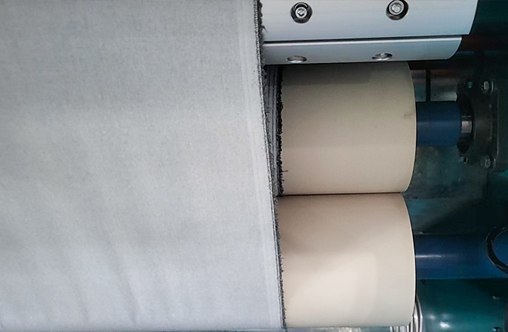 Ardchóras Rialaithe Teannais agus Sásra Gluaiseachta Cothrománach: Tá sé ríthábhachtach teannas aonfhoirmeach a choinneáil ar an bhfabraic le linn an phróisis ghranála chun cáilíocht an táirge chríochnaithe a chinntiú. Úsáideann an Meaisín Sueding Comhcheangailte Cothrománach MW-Samhail MW teicneolaíocht rialaithe teannas ard-chruinneas, monatóireacht a dhéanamh ar theannas fabraice agus é a choigeartú go huathoibríoch i bhfíor-am chun síneadh míchothrom, dífhoirmiú nó roic a chosc le linn próiseála, rud a chinntíonn sanding aonfhoirmeach agus dromchla réidh. Cuireann córas tairiscint cliathánach an mheaisín ar chumas ascalaithe cobhsaí ar fud leithead na fabraice freisin, rud a chinntíonn teagmháil aonfhoirmeach idir an sorcóir meilt agus an fabraic, deireadh a chur le héifeachtaí imeall agus cosc a chur ar ró- nó ró-ghaineamh. Cinntíonn comhordú an chórais teannais agus tairiscint cliathánach torthaí comhsheasmhach agus tarraingteach ó thaobh amhairc ó imeall go lár.