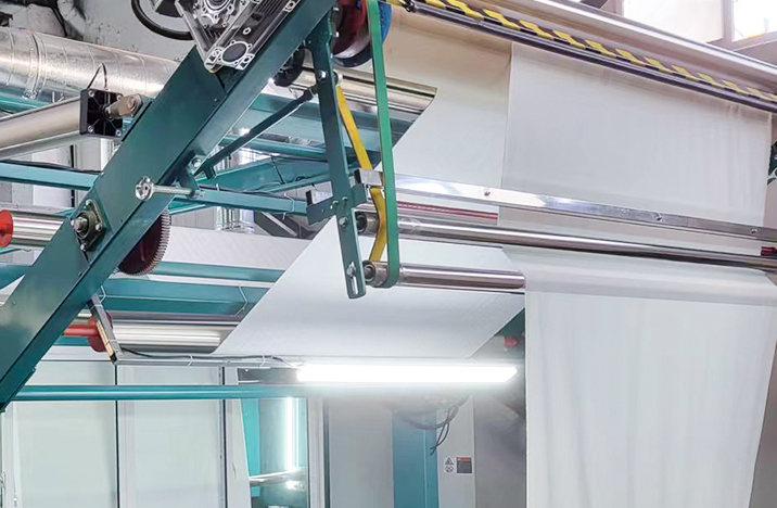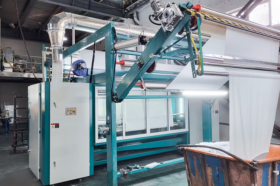 Córas rialaithe teannas Chliste: Tá an trealamh seo feistithe le córas braite teannas agus ceartúcháin uathoibríoch a bhraitheann luaineachtaí teannas ar dhromchla na fabraice i bhfíor-am agus a choigeartóidh luas na fabraice agus an uillinn beatha go huathoibríoch chun síneadh agus dífhoirmiú fabraice a chosc. Tá sé seo tábhachtach go háirithe maidir le fabraicí cniotáilte leaisteacha, rud a chosc go héifeachtach lochtanna próisis mar "stripes tíogair" agus "waving."